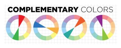 Complementary colors are those that enhance each other. They are opposite colors and are located directly across from one another on the color wheel. The color wheel consists of six basic sets of complementary colors. The graphic above depicts four examples of complementary colors. Using these color combinations give your projects high contrast. When mixing complementary colors, you achieve a muddy, brownish-grey color.