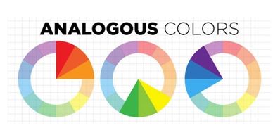 An analogous color scheme includes three neighboring colors. They are next to one another on the color wheel and share one dominant color (the color in the middle). These color schemes achieve a harmonious look and feel.