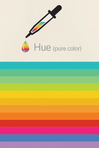 Green, orange, yellow, and blue — each of these is a hue, a color or a shade that's true. A rainbow shows the melting of one hue into another, from red to violet, and all shades in between. The noun hue means both a color and a shade of a color.