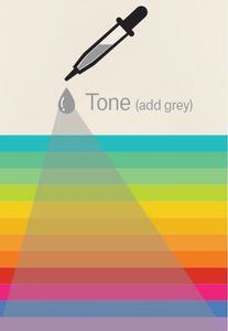 In color theory, a tint is a mixture of a color with white, which reduces darkness, while a shade is a mixture with black, which increases darkness. ... A tone is produced either by mixing a color with grey, or by both tinting and shading.